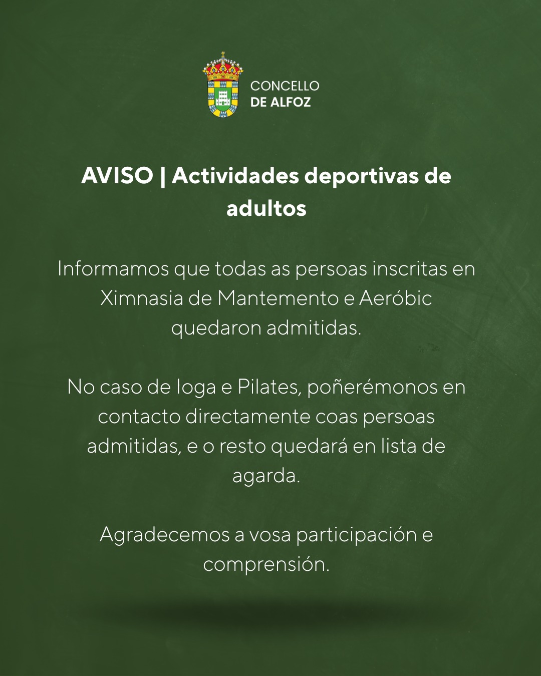 AVISO ACTIVIDADES DEPORTIVAS DE ADULTOS