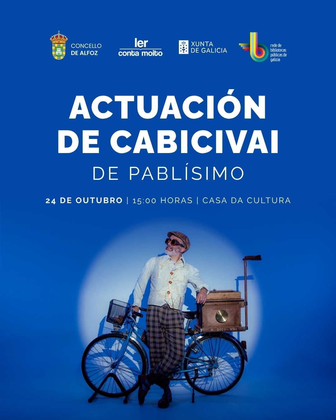 Coincidindo co Día das Bibliotecas, o venres 24 de outubro teremos a actuación de Pablísimo coa súa nova proposta: CABICIVAI, un espectáculo sobre rodas cheo de maxia, contos e imaxinación.