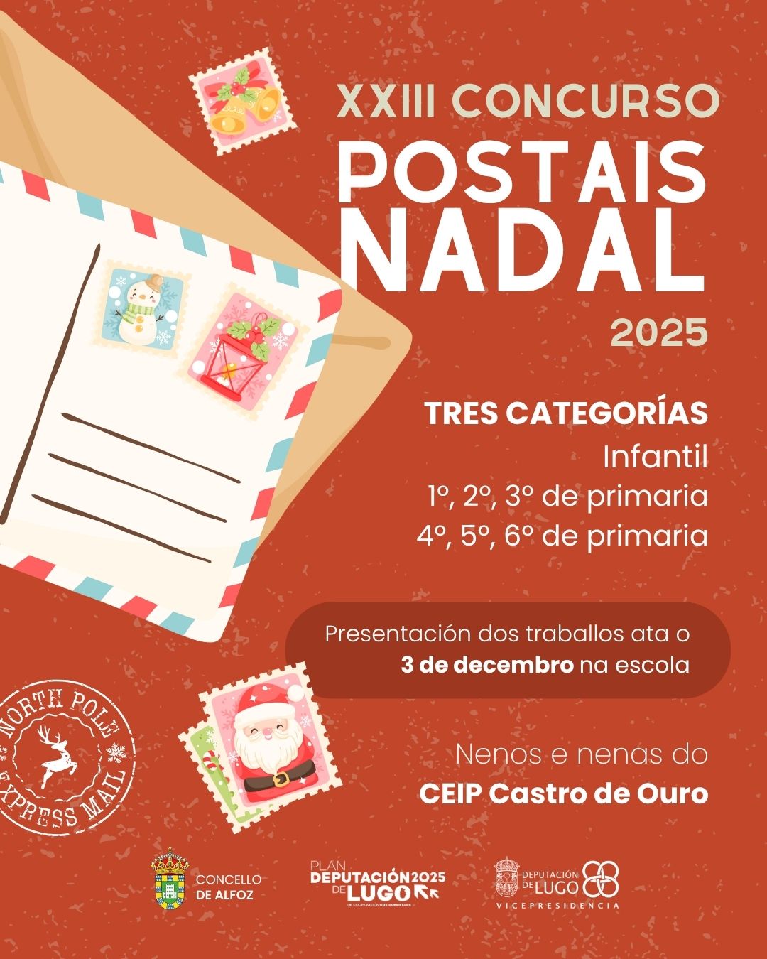 O Nadal xa se achega e, como cada ano, o Concello de Alfoz convida aos nenos e nenas do CEIP Castro de Ouro a participar neste tradicional concurso de postais navideñas: