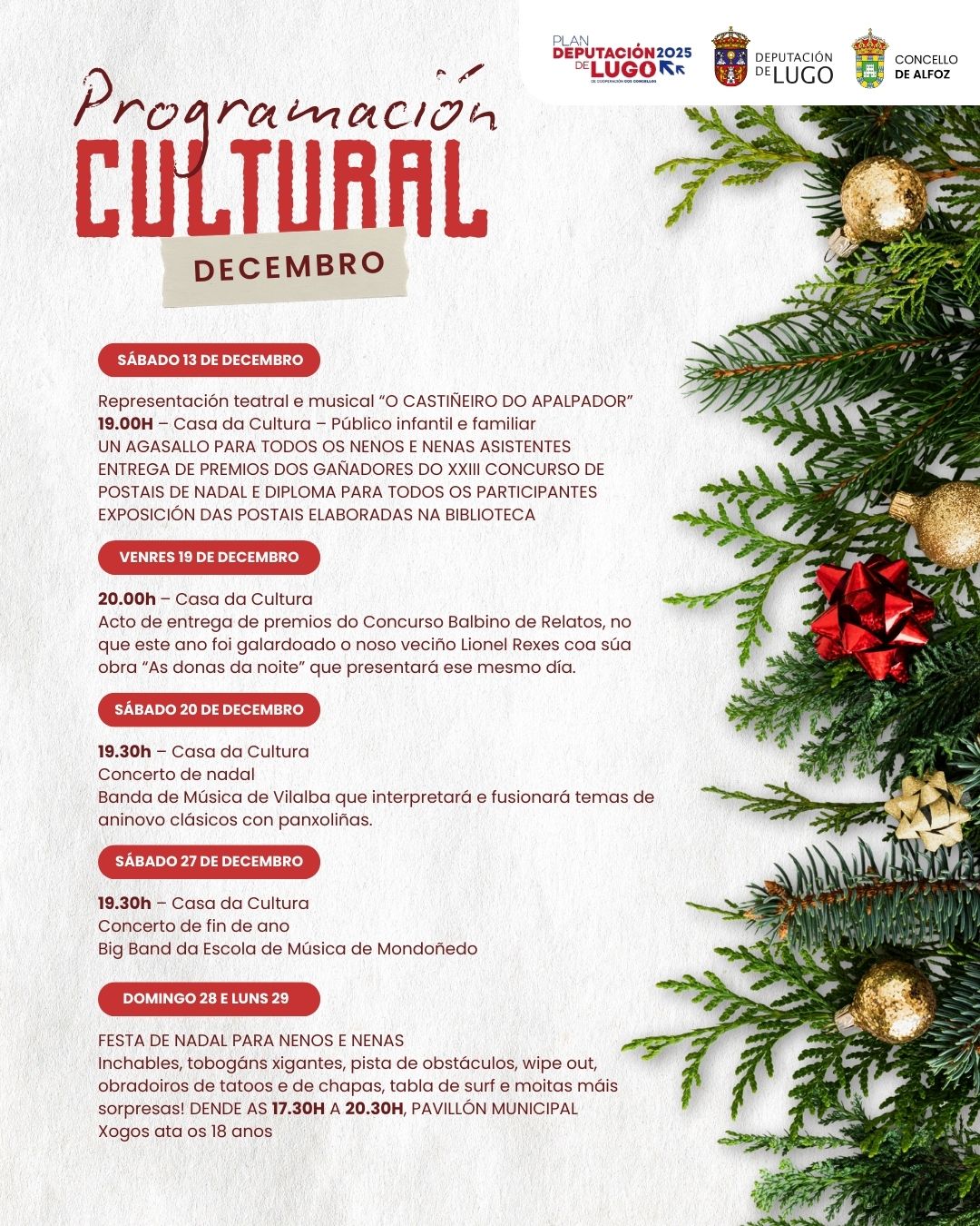 O mes de decembro chega cargado de teatro, música, literatura e festas infantís para desfrutar en familia. Un programa pensado para todos os públicos, con actividades que nos acompañarán ata o final do ano.