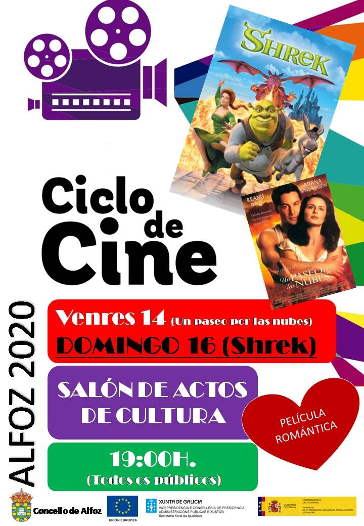 Así no mes de febreiro serán películas románticas, dando comezo o venres 14 coa película “Un paseo por las nubes” e o domingo 16 coa película “Shrek”. Os pases serán no Salón de Actos ás 19.00 horas e a entrada é gratuíta.