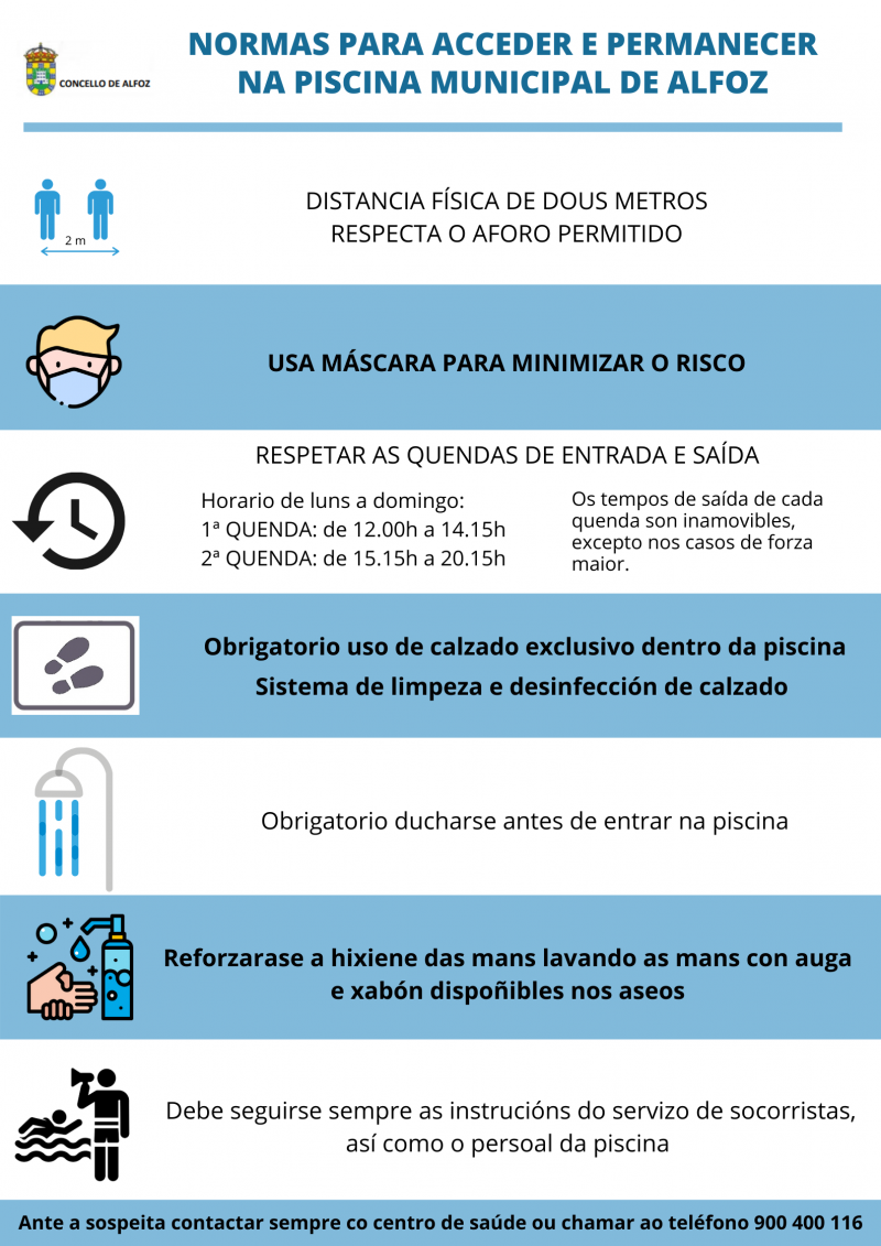 Consulta as normas para acceder e permanecer na piscina municipal na seguinte imaxe.