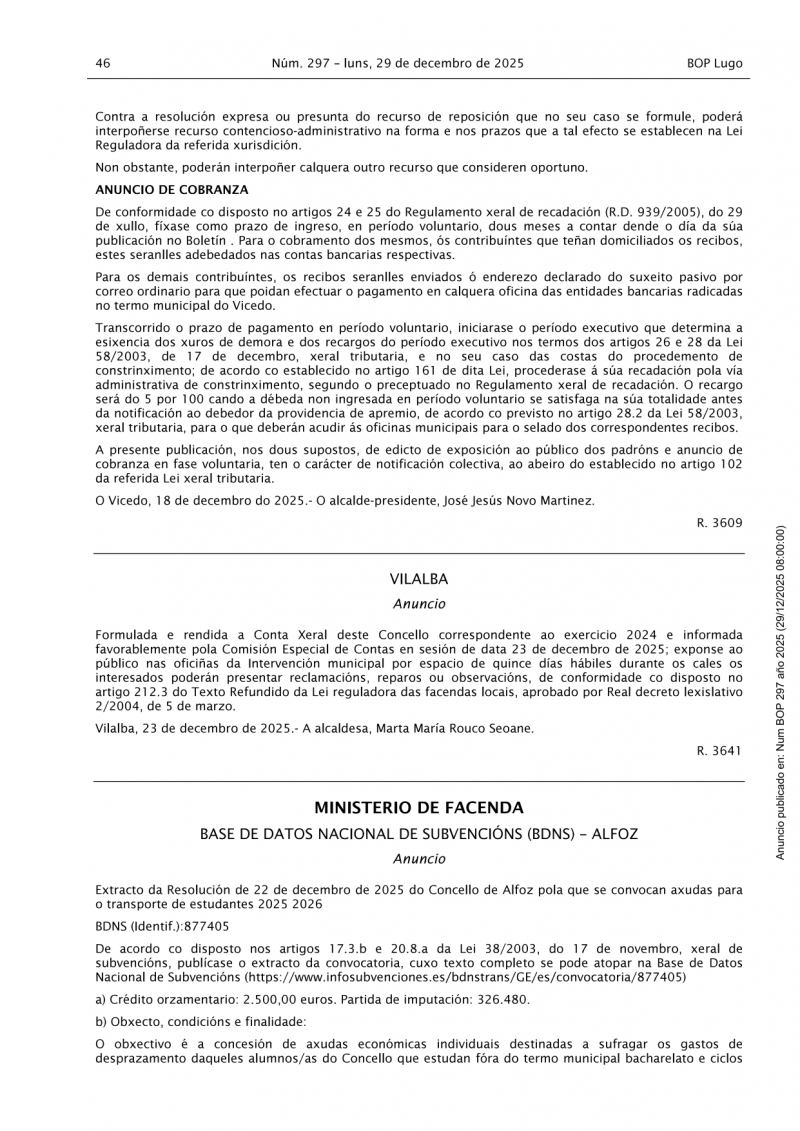 Para más información, dirígete al Concello de Alfoz o consulta la documentación oficial.