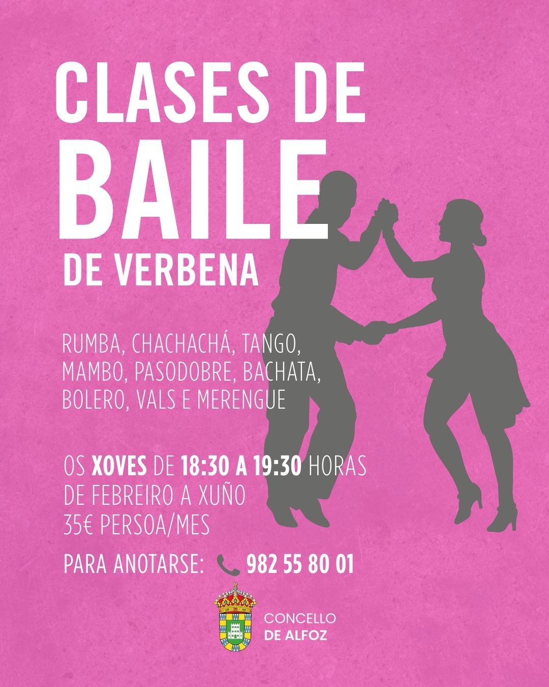 El Concello de Alfoz colabora en esta actividad pensada para aprender, moverse y disfrutar al ritmo de rumbas, pasodobles, bachatas, tangos y mucho más.
