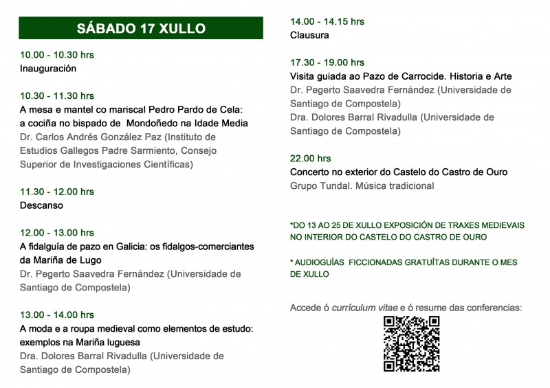 XORNADA DE HISTORIA LOCAL. Castillo de Castro de Ouro, 17 de julio.